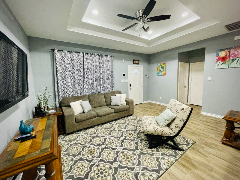 Property Id: 1306418 Gorgeous fully furnished new constructed home, easy access to everything from this centrally located place. Near Downtown San Antonio, conveniently located minutes from hospitals, UTSA, downtown attractions (The Pearl, Rivercenter, The Alamo, Fort Sam Houston, AT&T Ctr, Seaworld/Aquatica, Six Flags), restaurants, shopping center, and military base. Perfect for a weekend getaway, business trip, midterm travel contractors, work-from-home alternative, or cozy home base while exploring San Antonio. Property has gated driveway that can fit 2 cars. Front parking is also available. Walking distance to public transportation. Easy access to major highways: I-10, 410, 281, as well as back roads. Master bedroom has private bathroom with walk in closet.