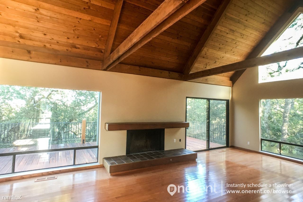 Want a home in a serene, natural setting? This is it. This home boasts wood vaulted and beamed ceilings, walls of windows, and skylights that let you bring the outside in. Just renovated, the kitchen features new, white cabinetry, glossy granite countertops, a prep island with sink, custom tile backsplash, new refrigerator, range, dishwasher, and microwave. Freshly painted, the neutral walls compliment any decor as do the rich hardwood floors. Imagine yourself sitting in the great room with the fire crackling. The master bedroom has a walk-in closet and an attached master bath with double sinks. The washer and dryer are included. Sip your wine made right from the communal vineyard on your private patio while taking the views of the oak woodlands. Parking is one covered spot and one uncovered spot. Cats allowed. The landlord pays garbage, sewage, landscaping, and HOA. Tenant pays electric, water, and gas. The community has a pool, barbecue, fitness center, playground, and tennis court. Easy access to 280, 84, and 35. Near top-rated schools. No Dogs Allowed