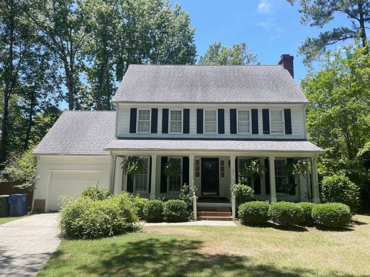 Beautiful 2-story home in a convenient Hampton Woods location. Relax on the charming front porch and enjoy the peacefulness of the quiet cul-de-sac. The kitchen is bright and spacious, offering plenty of storage, glassed cabinetry, a cozy breakfast nook and includes fridge, stove, dishwasher, and microwave. It seamlessly connects to a large living room featuring a fireplace, hardwood floors, floor-to-ceiling windows, and French doors that open to a delightful screened porch overlooking the expansive, fully fenced backyard. The master suite boasts a private bath and a walk-in closet. Once car attached garage plus plenty of driveway parking. Wonderful home with central heat and air plus washer and dryer are included.