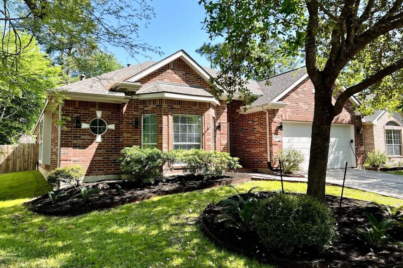 Gorgeous light and bright one-story home on superb cul-de-sac street offers a lovely, neutral paint palette and outstanding floor plan, Stunning recently renovated kitchen has abundant cabinetry, built in desk area and large breakfast area. Kitchen seamlessly flows to a huge living area with beautiful stone floor to ceiling wood burning fireplace and rich hardwood floors. Spacious master suite provides maximum privacy with an oversized frameless walk-in shower, dual vanities, and his and hers walk-in closet. Three nice-sized bedrooms are split from the master. Relax with family and friends and enjoy the spacious backyard with ample room to run and play and entertain guests. Well-maintained home with brick accents all around, double wide driveway, and 2-car garage sought after Sterling Ridge. Centrally located with easy access to major thoroughfares, fine shopping and dining. Exemplary Woodlands Schools ! Bonus: Owners provides complimentary front lawn care at no extra cost.