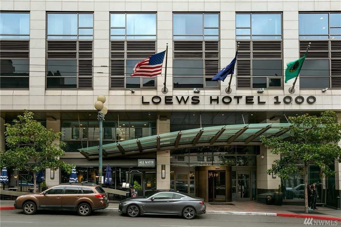 Situated on 17th floor of Lowes Hotel 1000/ Madison Tower, with views to the East. Hotel amenities with luxury living, room service, valet parking, Spa, fitness room, virtual golf, and All Water Restaurant. Kitchen offers Wolfe range, Subzero, granite counter tops, and hardwood floors throughout. Spacious unit with high ceilings and walls of windows. Travel & Leisure ranks Hotel 1000 #1 in the PNW. Walking distance to shops, restaurants and the waterfront.