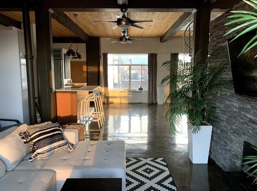 Lease transfer of Huge penthouse Loft near old port of Montreal. Big windows provide lots of light and great views. Ample space for any couple or individual looking for a trendy apartment. Work nook allows for WFH set up. Fireplace for cozy winter nights. Big PRIVATE terrace on the roof with 360 degree views of Montreal. Great for bbqing in the summer, sun bathing and hosting rooftop dinners! Semi furnished. Fridge, stove, washer, dryer, dishwasher included + couch + dinning table and king size bed. Building has dry sauna for your use. Streets are quiet and provide ample parking opportunities (we always park right in front of the main entrance with our city parking pass - costs us 165$ a year). 5 minute walk to grocery store, SAQ & gyms, 10 minute walk to the old port, 8 minute walk from berri UQAM metro. Move in date is flexible, aiming for December 1st. Price does not include hydro or Internet.
