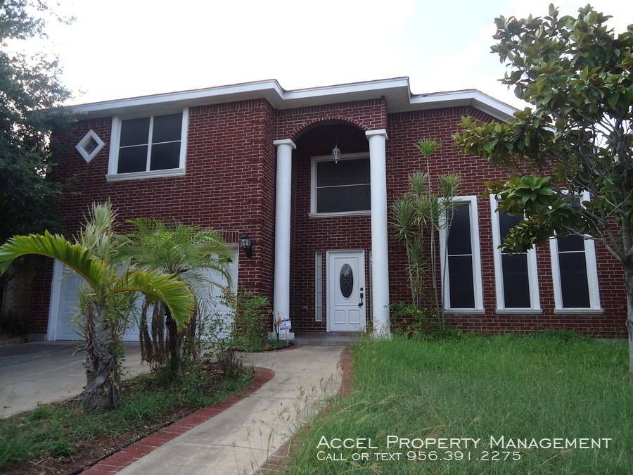 Large 4 bedroom home in McAllen! This home has high ceilings and tile floors throughout the 1st floor. All walls have been recently repainted. Master bedroom is downstairs. Three additional rooms upstairs with carpet and extra living area. This home also has a balcony and fenced backyard with a patio. Washer and dryer are included!