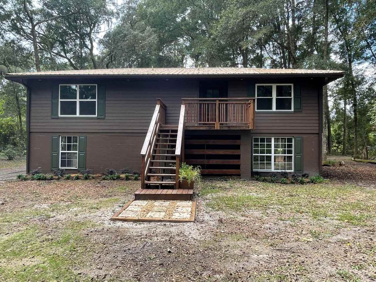 Enjoy all the river life has to offer in this superb location in Two Rivers Estates. Wooded and private lot on one acre and one block off of the Santa Fe and Suwannee River. Also within walking distance to the local boat ramp. Completely renovated custom design like-new home features gorgeous luxury plank stone-look vinyl flooring throughout great room and carpet in the bedrooms. The living room features a bamboo wood accent wall and a corner wood burning fireplace with stone accents. Large granite dining and serving bar separating the living room and kitchen. Custom high top granite bar and built-in shelving for additional dining or great workspace with sliding glass door to the large back deck. Brand new black stainless steel appliances. Hall bathroom boasts custom stone accents and tile. Large shower with recessed nooks, built-in seating, and sliding glass doors. The Master bedroom features a bamboo accent wall and the master bathroom boasts an oversized ceramic tile shower with a built-in seat and four showerheads. One guest room includes private back door access to a large back deck. The fully functional elevator is also located on the back deck. The entire bottom of the home has an outdoor living space and several bay carports. Stone exterior patio with fire ring. Two restaurants on the water within paddling distance and just 60 miles out to the Gulf of Mexico.