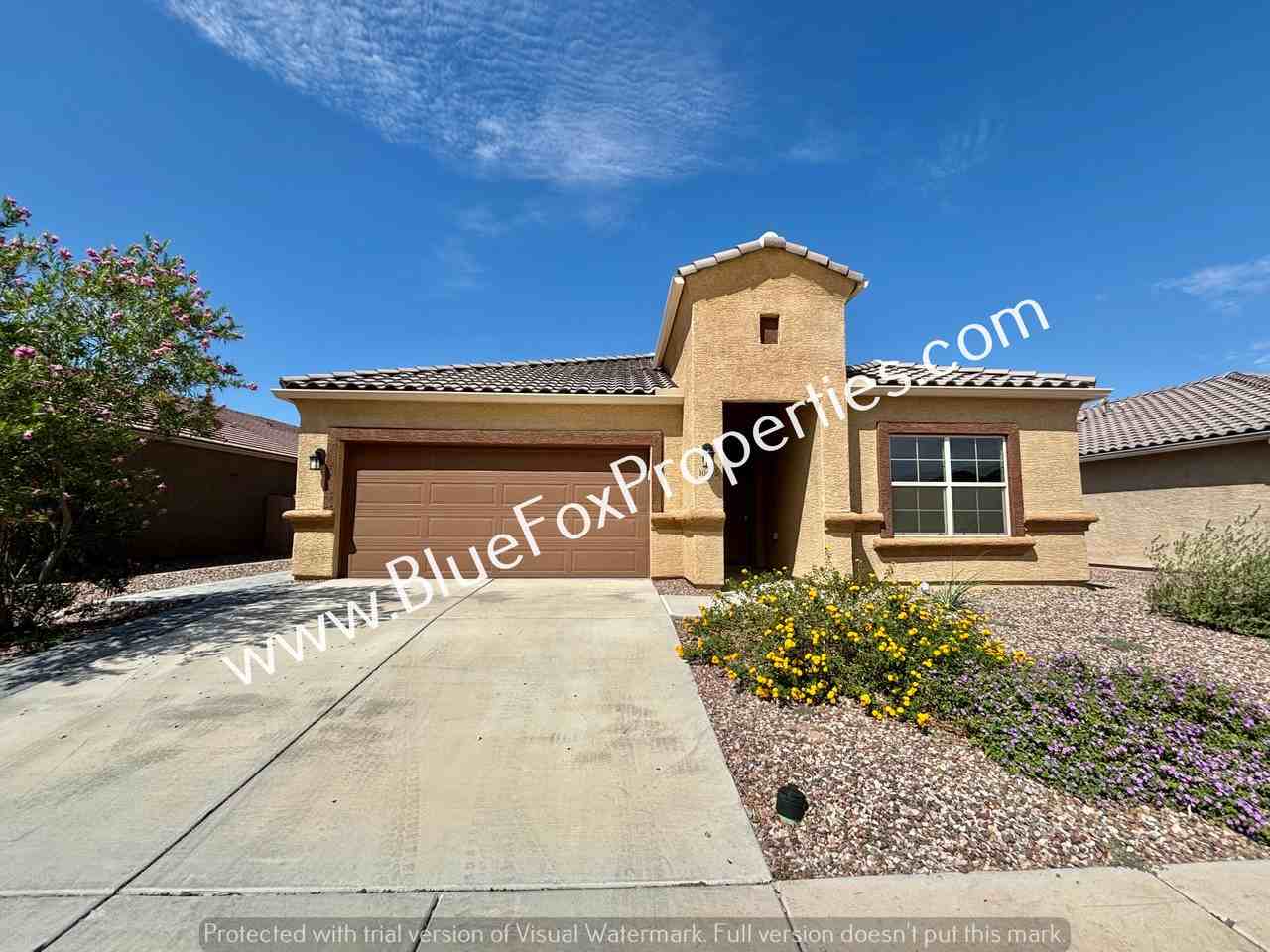 Gorgeous 4 bedroom, 3 bathroom, + Den, one story home in desirable Saguaro Bloom, just 6 minutes from i-10, and Premium Outlet Mall. It showcases a very bright & open concept w/tall ceiling & lots of natural light. So many closets, shelves & storage throughout the house. The huge kitchen w/big island features a beautiful granite countertop, dark espresso cabinets, and stainless steel appliances. The large and low-maintenance backyard with a covered patio, & a high block fence is great for entertaining. The community features pools, playgrounds & parks. Schedule a showing today! This home is available now for a 1-year lease. The rental rate is $2,175.00 per month, and the security deposit is $3,262.50. Blue Fox Properties is an Equal Opportunity Housing provider. We are also licensed REALTORS.