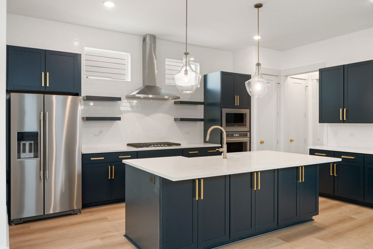 | Hardwood Floor | Large kitchen island |
