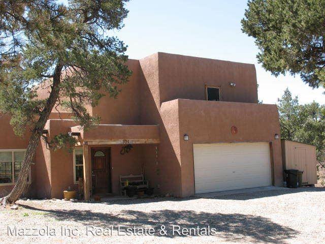 3 Bedroom, 2 Bathroom Home in Gated Community in Sandia Park, NM. - Pretty Pueblo in the Pines. The 3 acre wooded lot in a gated subdivision offers privacy and serenity. Two story pueblo style has tile floors, viga and latilla ceilings, custom accents. Living room has room for two groupings and a wood burning stove. Sunny dining with room for hutch.Country kitchen has loads of tiled workspace, extra-large storage pantry, and stainless steel appliances. Spacious laundry and half bath. Upstairs master suite with bright master bath and walk in closet. Private deck off master with incredible views of the green side of Sandias. Two guest bedrooms with full bath, custom window treatments. Flagstone patio with hot tub and space for BBQ. 2-car garage and extra storage area. Water system, private roads. Call Liz for more information or to schedule a showing, (505) 250-1250.