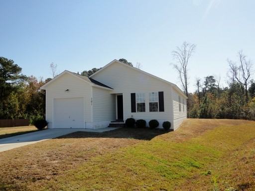Adorable home located on a cul-de-sac home site within minutes to MCAS New River and Stone Bay with easy access to Camp Lejeune via bypass. Wood laminate floors shine through all the living spaces with carpet being in the bedrooms. Very open floor plan perfect for entertaining. Kitchen is complete with stainless/black appliance package and breakfast bar. Side French door allows access to the deck. Separate dining area. Spacious master bedroom includes private bath and walk in closet. Great laundry room with shelving. Pets accepted with owner approval. No cats. 1/2 Months Free Rent!