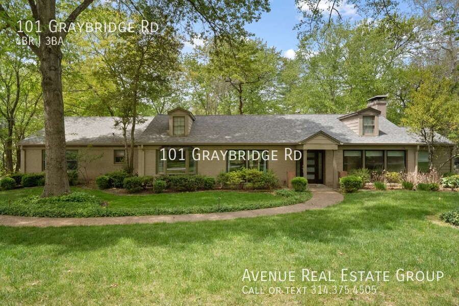 Available Jan 10th - Tenant occupied, reach out to Realtor---Rare chance to lease in the HEART OF LADUE. Nearly 1 acre offers serene, park setting with newly-fenced & professionally-landscaped lawn with walking trail. The ranch home is ideal for anyone seeking 1 level, loaded with upgrades. Mid-century home has been renovated throughout with modern accents. In gourmet kitchen find 42" cabinets, granite counters & oversized butcher's block island. Excellent home for entertaining offers with large formal dining room with fireplace, adjoined sitting room or office, formal living room, sunroom & private patio ideal for garden parties. Master suite with large custom tile walk-in shower & organizer system in walk-in closet. Completely updated guest house rounds out this beautiful home. Ladue Schools, private schools surround this home. Access to hwys, dining and shopping.