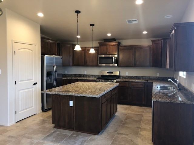 - Granite countertops with large island