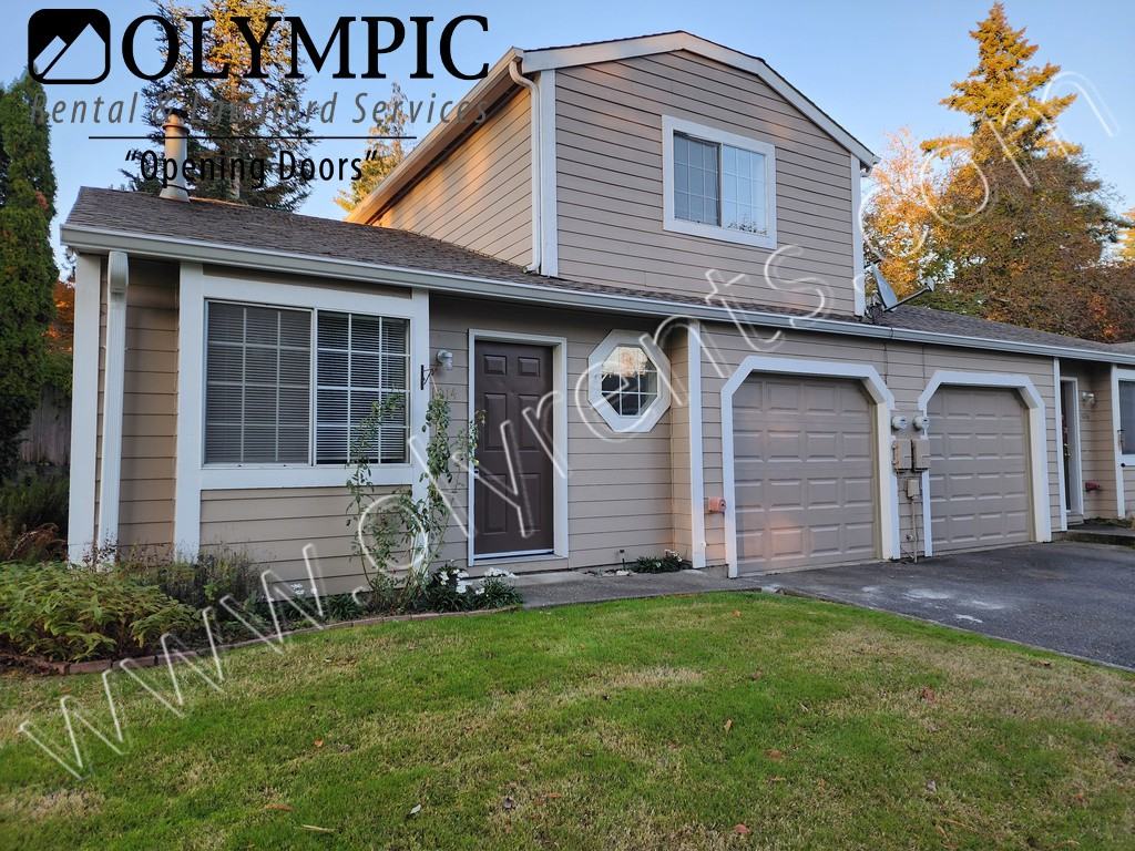 Brand new kitchen counters, sink and cabinets! 2 Bedroom 1.5 Bath Townhouse style duplex. 1 car garage. Includes Washer/Dryer, dishwasher, electric range and wood stove. Kitchen, dining, living and half bath downstairs. 2 bedrooms and full bath upstairs. Easy north and south I-5 access. Close to downtown and bus lines. Private patio. Lawn professionally maintained. No smoking. Small pet negotiable. City of Olympia.