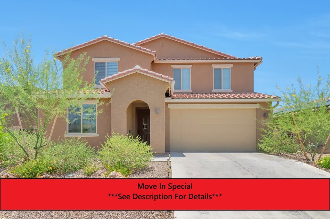 This expansive 3,030 sq. ft. residence seamlessly blends modern elegance with the tranquility of the Sonoran Desert. Nestled near Colossal Cave, this prime location offers easy access to I-10, shopping, dining, and top-rated schools in the Vail School District. Step inside to discover a thoughtfully designed open floor plan featuring high ceilings, abundant natural light, and luxurious finishes throughout that have been upgraded. The spacious gourmet kitchen boasts sleek countertops, premium appliances, and an oversized island--perfect for entertaining. The primary suite is a private retreat with a spa-like ensuite bathroom and a generous walk-in closet. Additional bedrooms provide comfort and versatility, while a beautifully designed living space invites relaxation. On the first floor you will also find an expansive guest suite. Outside, enjoy breathtaking desert sunsets from the covered patio, with plenty of room to create your dream outdoor oasis. Conveniently located near the University of Arizona Tech Park, Raytheon, and Davis-Monthan Air Force Base, this home offers both serenity and accessibility. One-Time Admin Fee: $300. Monthly Service Fee: 1% of monthly rent. Refundable Pet Deposit: $300/Pet, if applicable. Resident Benefits Package: $39/month. Helping Heroes Discount Available!