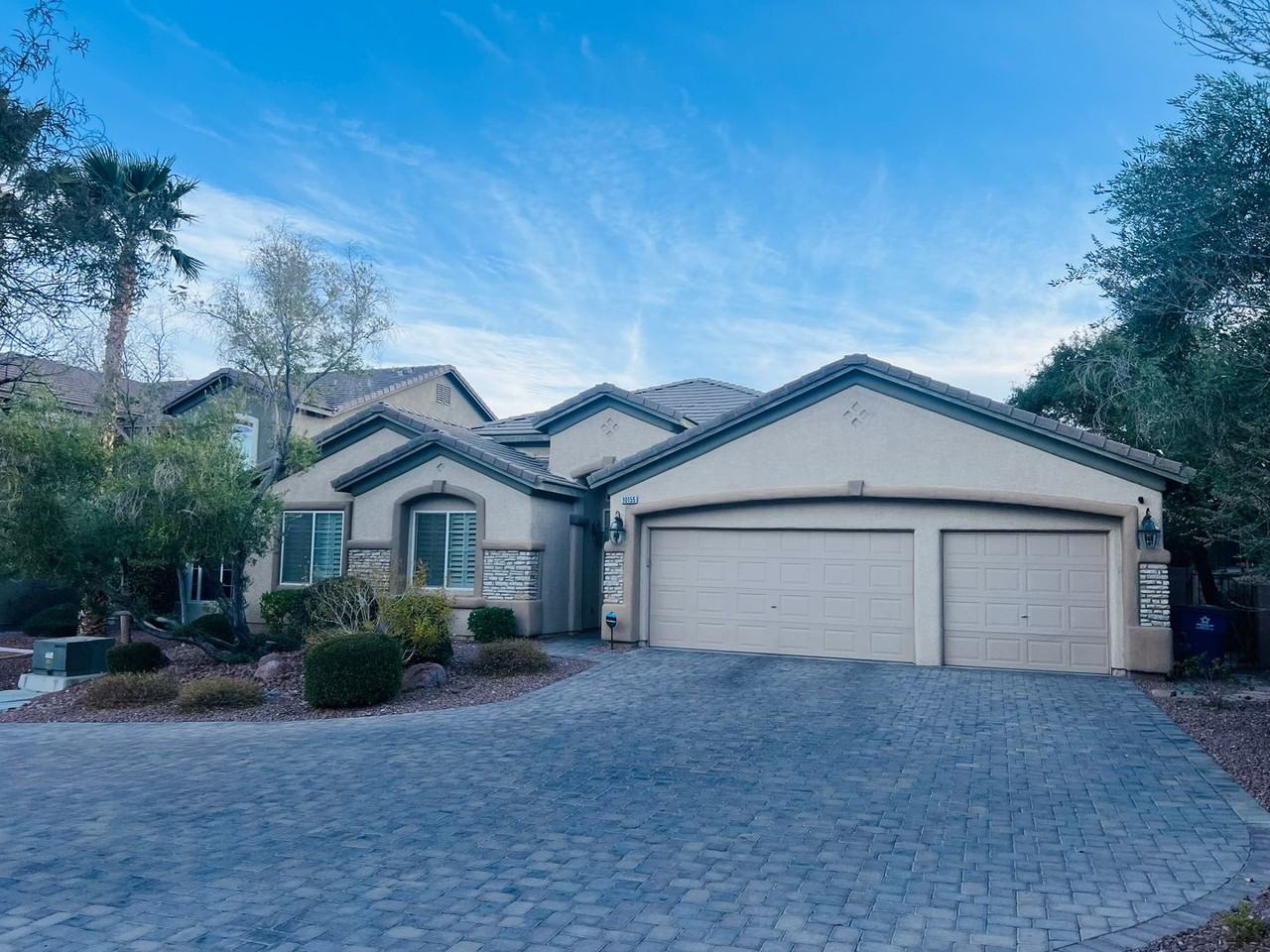 Great single story 3 bedroom home with an office AND a loggia/sun room PLUS a 3 car garage! Located in a beautiful gated community adjacent to Summerlin, this home is situated at the end of a cul-de-sac featuring beautiful mountain views. Open floor plan features many upgrades such as 11 foot ceilings, crown molding & plantation shutters. The chef's kitchen includes double built-in convection ovens, 5 burner gas cooktop, stainless steel appliances, upgraded cabinets, granite counters & tile backsplash. Perfect for entertaining, the spacious great room features a wet bar with a wine fridge, surround sound & gas fireplace. The master bedroom is separate and has a walk-in closet w/built-ins. Bedrooms 2 & 3 both have custom closets w/built-ins. The den can easily be converted into a 4th bedroom. Backyard offers above ground spa & B/I BBQ. You will love the close proximity to all of the amenities that Summerlin offers