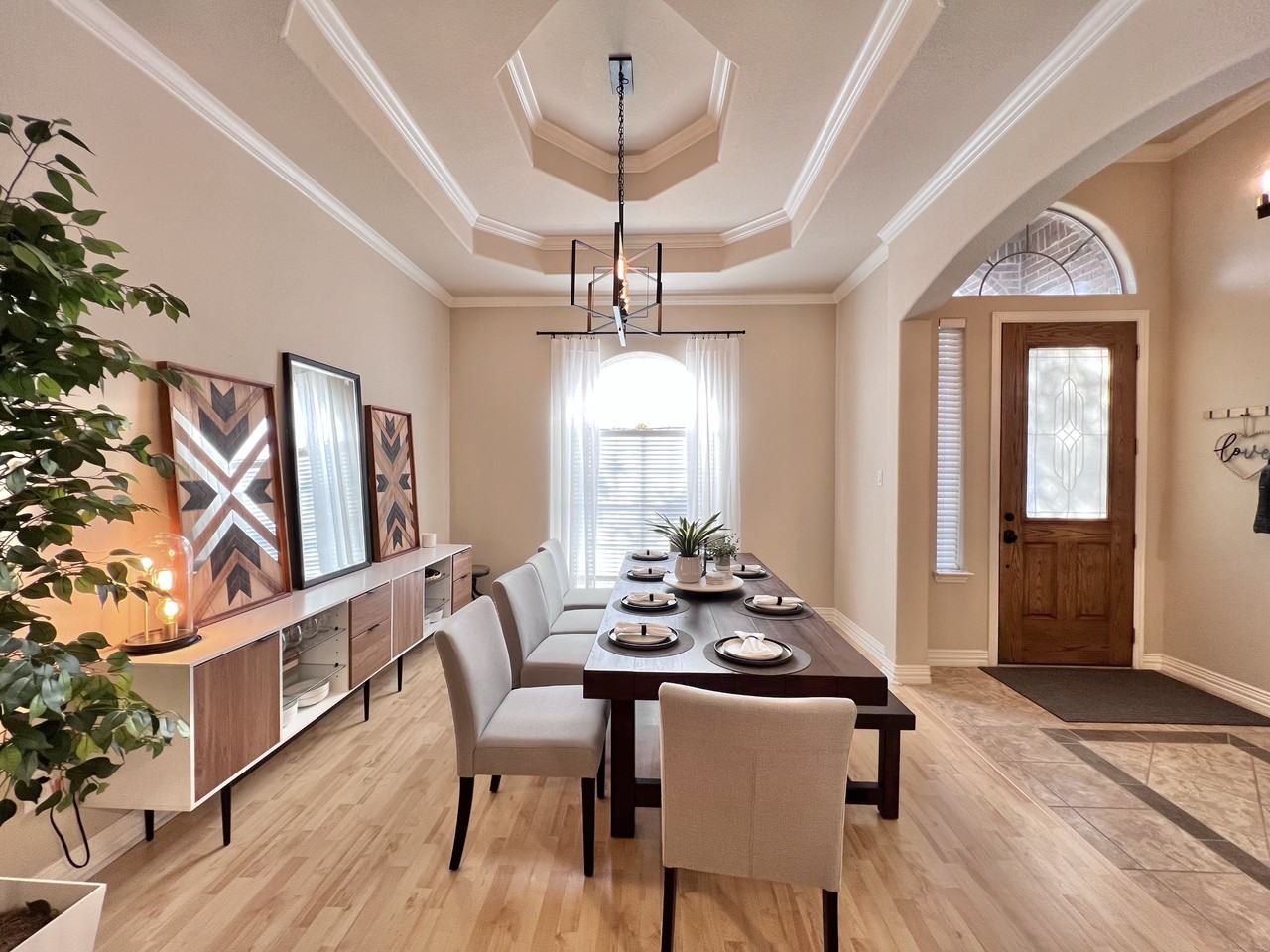 Beautiful, cool and naturally lit one story home. High ceilings in living rooms and natural lighting make this home welcoming to guests. Includes 2 living room areas, a dining room, and even a separate office room. Neighbors are friendly, quiet, and respectful. Neighborhood has clean sidewalks for a stroll or runs. You can add a barnhouse contemporary or modern look to the home, depending on your taste this home is very flexible. There is plenty of garage space for three cars. The backyard is upgraded with pavers for low maintenance yard work. There are live oaks surrounding the property to keep the house cool. The fence has recently been replaced. Home comes unfurnished. The home is near highway access and minutes away from nearby sports, dining and entertainment. -The AT&T cowboys stadium is 21mins away -Downtown Fort Worth is 18mins away -Fort Worth Stockyards is 20mins away -Restaurants in Clearfork Fort Worth is 18mins away Lease details: Upon lease execution, the security deposit and the first month's rent are due. Tenants are responsible for all utility expenses to ensure efficient resource management. Please note that pets are not permitted on the premises and smoking is prohibited indoors. Additionally, the property offers a three-car parking garage and ample street parking. The landlord will oversee air conditioning replacements, while maintenance tasks fall under the tenant's responsibility. Washer and Dryer is included but tenant is responsible for maintaining equipment. Tenants are also accountable for maintaining the lawn both at the front and rear of the property.
