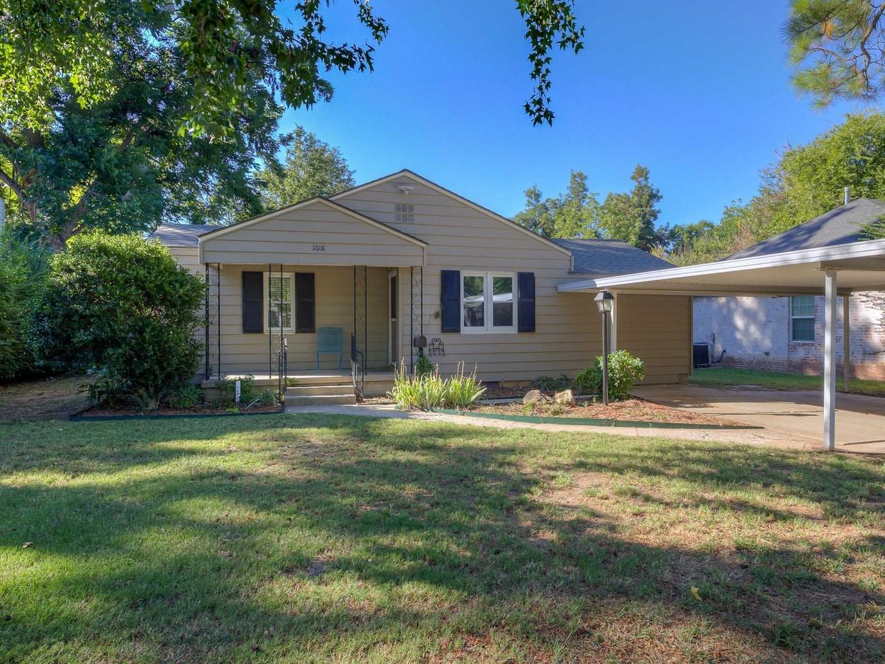 Super cute bungalow around the corner from Lion's Park, and mere blocks to the University of Oklahoma. Inside the home, the original wood floors are in great shape and throughout the home, and the bonus room with the washer and dryer hookups is the only carpeted area. Kitchen features granite counters and stainless appliances with a gas stove. Windows, HVAC, and electric panel have all been updated. Has a two car covered carport, and a covered front porch and extended back patio that are both perfect for entertaining. The backyard is HUGE and has ample room to make it your own slice of paradise. There's also an oversized in ground storm shelter in the backyard, and two sheds for lots of storage. Check this one out!