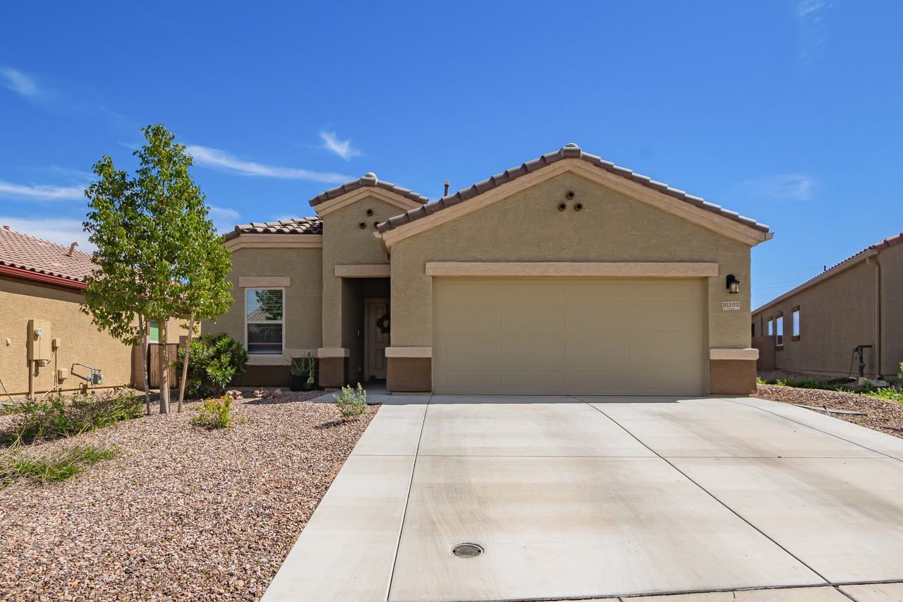 Popular floorplan located in Saguaro Bloom. 4 bedroom, 2 bathroom, open concept with a spacious kitchen and island. All appliances included. Solar and water softener. Professionally landscaped backyard with turf and gazebo. Community offers walking trails, parks, clubhouse, splashed, swimming pool, and fitness center.