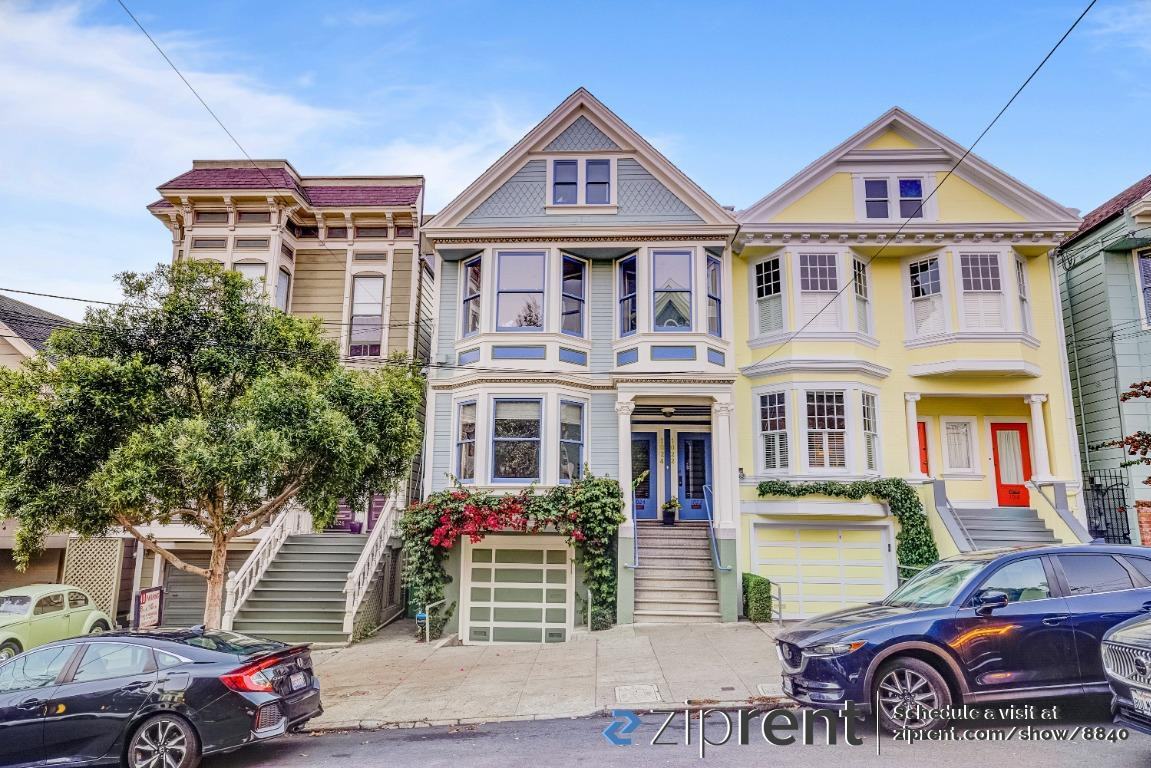 This property is available. Please inquire on this site to schedule a showing. Victorian 2 bed 2 bath condo on a Slow Street in Noe Valley, AVAILABLE 2/7! This first-level home in a gorgeous 2-unit building built in 1848 features front-facing and rear-facing bay windows, hardwood floors, wood trim and molding, freshly painted interior, exterior painted in 2020, SimpliSafe-protection. Living room has bay windows facing the Noe Valley Ministry. Dining room features bay windows facing the garden, light fixture, and fireplace with built-ins. 2 spacious bedrooms with built-in closets. Dining room can be converted into a 3rd bedroom, if desired. Kitchen is equipped with stainless steel appliances, dishwasher, gas range, refrigerator, and lots of cabinetry and pantry space. While the fireplace is a wonderful reflection of the detailed architecture and personality of the condo, it is not functional. Relax on a covered back deck and gaze at the serene backyard garden with fruit trees and bushes (plum, apple, blackberries, rosemary). Also includes a 1 car garage space suitable for small to midsize vehicle (side-by-side) and a large private storage unit. Walk Score 97 (Walker's Paradise) Transit Score 74 (Excellent Transit) Close to tech shuttles, J Church, Mission BART station, MUNI bus, car share options. Steps from 24th street (Whole Foods, restaurants, farmers market, Noe Valley Town Square, etc). Security deposit is equal to 1 month rent. Rent includes Garbage/Water/Sewer & HOA responsible for Landscaping. Tenants are responsible for all other utilities. No pets, No smoking. In-unit laundry - washer/dryer provided as-is and are approx 5 years old. Disclaimer: Ziprent is acting as the agent for the owner. Information Deemed Reliable but not Guaranteed. All information should be independently verified by renter.