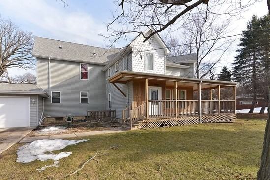 Bright spacious home with wrap around porch on large lot backs up to bluff on Butterfield Creek. Lots of windows with plenty of light and terrific views. Close to Elliot Woods Park. Hardwood floors throughout main level. Laundry room right off the kitchen. Foyer and hallways are extra large. Zoned heating, freshly painted, new carpet. Village inspection has been done.