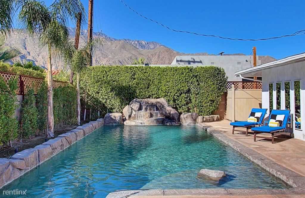 Long Term Lease Offered Furnished or Unfurnished. This gated, private compound 1960's Mid-Century Modern ranch style home has been completely renovated from top to bottom and is located in the highly desired Movie Colony East neighborhood... just across from Ruth Hardy Park and located minutes from downtown Palm Springs, close to golf courses, casinos, shopping, restaurants, and nightlife. This home features 3 bed / 3 baths, modern amenities, a sparkling pool and fabulous back yard designed for entertaining with mountain views. A great use of space, inside and out. 032992262JP219041020PS Please call 760-358-6200 **** Listing provided by Ryan Cummings of HK Lane Real Estate (LA State License:01415106) 760Leases. com