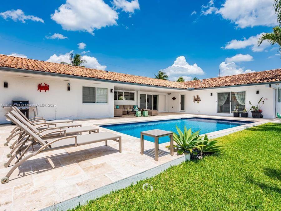 Tropical modern 6BD 6.1BA furnished short term direct ocean access luxury rental in Gables by the Sea. 1-story updated open, spacious floor plan w/3085sf liv area on 11,500 sf waterfront lot. Travertine & tile floors, full impact glass, saline beach entry pool & covered patio. Fully equipped chef's kitchen w/top appliances. Contemporary coastal living w/private dock, 1min to Biscayne Bay w/no bridges. Gables by the Sea is a guard-gated, family-friendly community: wonderful park, top tier schools, 20 mph closed-end, low traffic pedestrian-friendly streets. The City of Coral Gables, an Int'l Sister City boasts significant landmarks, 1st class services, parks, restaurants, shops & theaters. Cosmopolitan vibe within a safe community setting. Avail for 6mths or less. Manuel Escotet Florida Homes Realty & Mortgage Courtesy of Compass Florida, LLC. Broker.