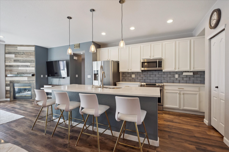 Property Id: 2170838 Welcome to this beautifully updated 2-bedroom, 2-bath condo with a 1-car garage in the desirable Skyline Estates community. The open layout features high ceilings and a cozy gas fireplace that anchors the main living area. The modern kitchen is light and bright, showcasing white cabinetry, quartz countertops, stainless steel appliances, and a spacious center island. The two bedrooms are thoughtfully positioned on opposite sides of the living space, providing privacy and comfort. The primary suite offers a remodeled bathroom and an oversized walk-in closet, while the secondary bedroom includes two large closets and convenient access to a full private bath. A dedicated laundry room accommodates full-size washer and dryer. Step outside to the balcony, ideal for enjoying fresh air or unwinding after a long day. Residents of Skyline Estates enjoy access to community amenities including a pool and hot tub.