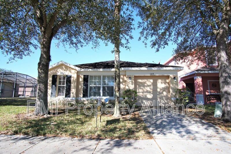 This beautiful home features a spacious open floor plan and is ideally located just minutes from Disney, Champion's Gate, and world-class golf courses. With 4 bedrooms and 3 bathrooms, including walk-in closets, this home offers both comfort and functionality. The modern kitchen is equipped with high-end stainless steel appliances, perfect for culinary enthusiasts. Step outside to enjoy the screened-in pool area, which overlooks a serene pond and provides ample outdoor space for relaxation and entertaining. The property also includes a washer and dryer for added convenience. Located in a family-friendly community with a nearby playground, this home offers the perfect balance of convenience and tranquility. Pool maintenance is included. Lawncare is tenants responsibility.