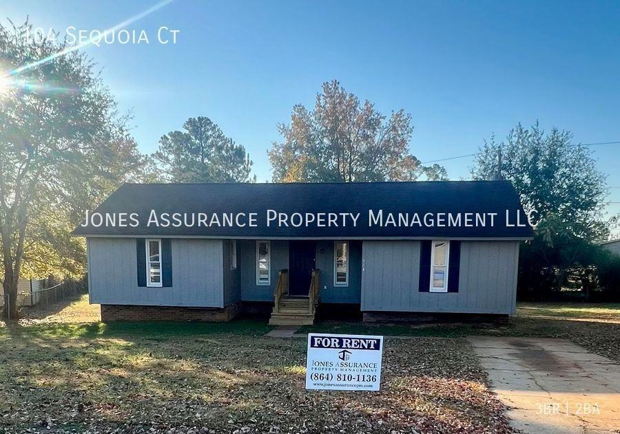 Newly Renovated 3-Bedroom Home in a Peaceful Cul-de-Sac - Easley, SC! Welcome to 104 Sequoia Ct, Easley, SC. This beautifully renovated 3-bedroom, 2-bathroom home offers a peaceful retreat in a quiet cul-de-sac location. With its modern upgrades and serene surroundings, this home is perfect for those seeking comfort and tranquility. Interior Features: The recently renovated interior ensures a fresh and inviting living space for you to make your own. The stainless refrigerator and range in the kitchen add a touch of elegance and functionality to the heart of the home. With 3 bedrooms and 2 bathrooms, there's plenty of space for you and your loved ones to enjoy. Exterior Features: Situated in a peaceful cul-de-sac, you'll enjoy a quiet and safe environment that is perfect for relaxation and privacy. The large backyard provides ample space for outdoor activities and leisure, making it ideal for entertaining or simply unwinding after a long day. Don't miss the chance to call 104 Sequoia Ct your new home. Contact us today to schedule a viewing and secure this beautifully renovated 3-bedroom home in the tranquil surroundings of Easley, SC. Find your perfect living space today! This home is not currently set up for the Section 8 program. Need a washer and dryer? Ask us about our appliance rental options! Pets are not allowed at this time. A welcoming environment is paramount to all of our residents. To help ensure ALL of our residents understand our pet and animal-related policies, we use a third-party screening service and require everyone to complete a pet profile, a “no pet” profile, or request accommodation for an assistance animal. This process ensures we have formalized pet and animal-related policy acknowledgments and more accurate records to create greater mutual accountability. If you are unable to complete a profile online and need help please contact your housing provider. Please get started by selecting a profile category on our landing page: https jonesassurancepm petscreening com All Jones Assurance Property Management residents are enrolled in the Resident Benefits Package (RBP) for $49.95/month which includes liability insurance, credit building to help boost the resident's credit score with timely rent payments, up to $1M Identity Theft Protection, HVAC air filter delivery (for applicable properties), move-in concierge service making utility connection and home service setup a breeze during your move-in, our best-in-class resident rewards program, and much more! More details upon application.