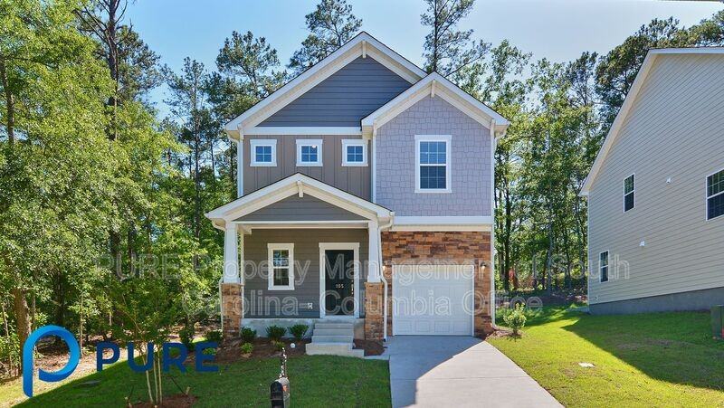 Beautiful 3 bedroom, 2.5 bath home in The Greens at Longcreek Plantation subdivision in Blythewood. This gated community home features a stacked stone-accented façade, covered front porch, 1-car garage, and backyard with patio that backs to trees. Inside boasts luxury vinyl plank flooring throughout the main level, bathrooms, and laundry room. Quartz counter tops in the kitchen and granite in both full baths. Half bathroom off foyer. Spacious open floorplan living space has high ceilings. Kitchen has an island w/ bar counter, walk-in pantry, and recessed lighting. Included stainless steel smooth-top stove, built-in microwave, dishwasher, and refrigerator. Loft space off upstairs landing perfect for workspace or sitting area. All bedrooms upstairs. Master suite boasts a walk-in closet and full bathroom with double sinks and large shower. Two additional bedrooms, 2nd full bath and laundry room off the hall. Easy access to I-77 & I-20, NE area amenities, and Fort Jackson. Richland 2 schools. All PURE Property Management residents are enrolled in the Resident Benefits Package (RBP) which includes renters insurance, HVAC air filter delivery (for applicable properties), credit building to help boost your credit score with timely rent payments, $1M Identity Protection, move-in concierge service making utility connection and home service setup a breeze during your move-in, our best-in-class resident rewards program, and much more! More details upon application. This property comes equipped with Gig-Speed Internet at $65.00/month! Amenities: patio, covered front porch, stacked stone-accented façade, 1-car garage