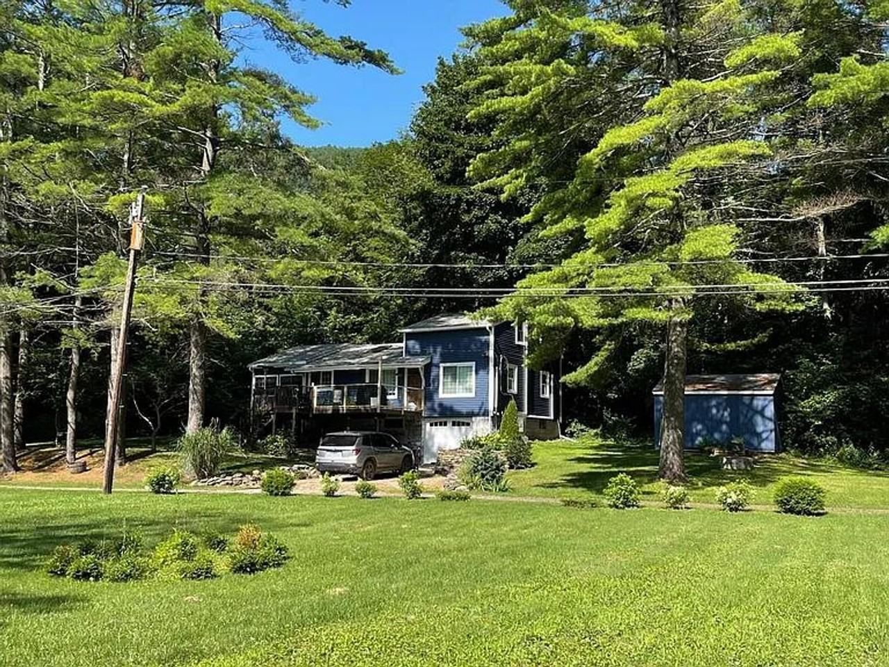 The front door opens into the great room, with vaulted ceilings and pleasant natural light, French Oak hardwood flooring and an open kitchen with granite counters. On the main level are 2 bedrooms (1 with king bed and 1 with twin bed), a bathroom, and an additional living space with room for an office setup. Upstairs has a third bedroom with new carpeting and a queen bed. Outside, the deck runs the full length of the house. Located right on Berkshire Trout Lake, this is a wonderful place to kayak with excellent bird watching and fishing opportunities.