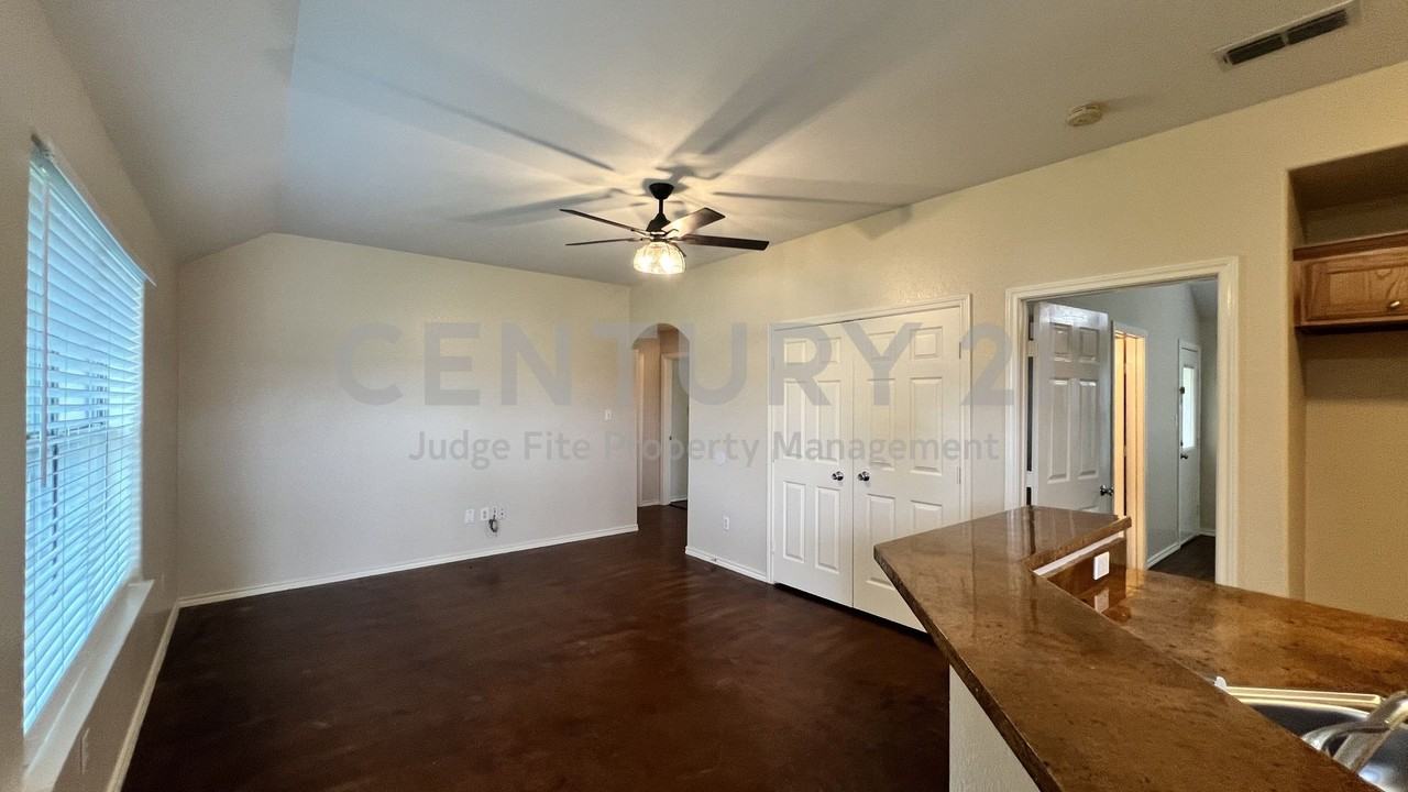 Come experience country living in this 3/2 fourplex unit! Just minutes from Weatherford College with easy access to I-20 and 171! Beautiful stained concrete flooring throughout and wood plank vinyl in the bedrooms. Open kitchen is accented by black appliances which include a built-in microwave, dishwasher and stove. Split primary suite features dual sinks and a large walk-in closet. Fenced backyard with covered patio, 1 assigned carport space, full size utility area and more! Owner maintains lawn and septic system! Water included! Hurry! This one's priced to move and won't last long! Only pets under 35lbs allowed with owner approval. $75.00 APPLICATION FEE PER APPLICANT OVER 18*FALL SPECIAL, $175.00 LEASE ADMIN FEE REDUCED TO $100.00 (DUE AT LEASE SIGNING)*WE DO PAPERWORK*TENANT / AGENT TO VERIFY ALL INFORMATION*ONLY PETS UNDER 35LBS ALLOWED WITH OWNER APPROVAL*NO SMOKING PLEASE*OWNER MAINTAINS LAWN & SEPTIC SYSTEM*WATER INCLUDED