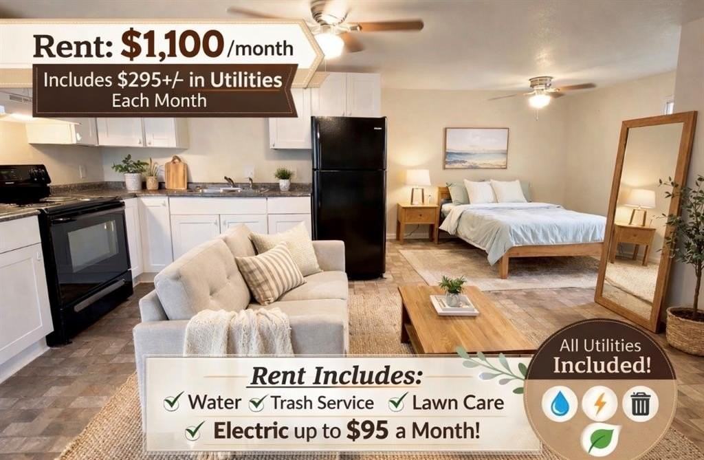 Property Status: Active Cozy tiny home offering peaceful country living with easy access to town. This well-designed space includes a full kitchen, bathroom, living area, closet, defined bedroom space, and a private yard. Monthly payment is $1,100 total, which includes a base rent of $805 plus $295 for lawn care, water, trash service, and up to $95 per month in electric (overages billed separately). Deposit is $1,100. Owner may consider one small pet under 25 lbs with additional fees. We can work with most low-credit situations when income and rental history are solid. Office Phone: (817) 223-7277 Copyright © 2026 North Texas Real Estate Information Systems, Inc. All rights reserved. All information provided by the listing agent/broker is deemed reliable but is not guaranteed and should be independently verified.