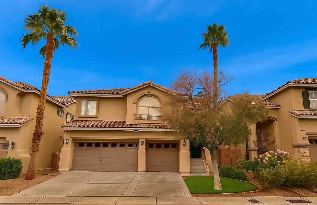 This stunning split-level rental property in North Summerlin boasts 3 bedrooms plus a den, 2.5 baths, and a pool with a spa. Custom paint accents the bright, open layout, including a palatial living room with a fireplace and balcony overlooking panoramic views of downtown Las Vegas and the strip. The island kitchen features newer appliances, granite tile counters, and a breakfast nook with a bay window. The spacious primary bedroom offers an en suite bath, while a cozy family room downstairs provides the perfect retreat. Additional amenities include a den, laundry room, and access to the covered balcony and backyard oasis, complete with majestic palms. Small pets under 20 lbs accepted in case by case basis, owner must approve.
