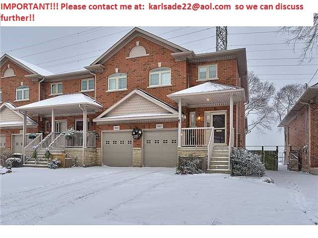 Burlington Beach Strip and overlooking beautiful Lake Ontario! This Freehold end unit backs onto Hamilton's Waterfront Trail offering walking, biking, sandy beach, swimming, boating and spectacular lake front views. The interior finishes feature superior craftmanship with attention to detail-Kitchen: solid wood cabinets and pantry, under-counter lighting, ceramic backsplash and a granite topped island/breakfast bar. Open concept on main level offers 9 ft ceilings, hardwood floors, ceramics, separate living Room and dining areas and a walk out to a large covered porch overlooking the fully fenced yard, trails & lake. 2 bedrooms, 2 full baths & 2 half bath