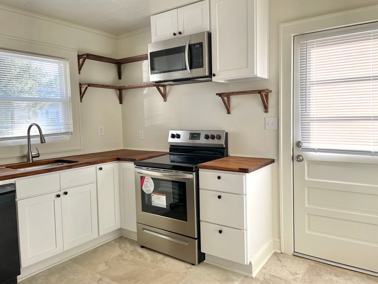 This recently updated duplex unit features a fresh white kitchen, all appliances appliances and butcher block countertops. Wood floors and tile provide an easy to clean home. With a brand new HVAC unit you're ensured an efficient energy bill. The original two bedrooms share a Jack and Jill style bath between. An additional bedroom and bath was added on to the 2nd bedroom. 2nd bedroom would be an ideal office space, or kids bedroom. The back bedroom has a small ensuite bathroom. All appliances are included in the rent - including the washer and dryer. On site parking is provided. This unit is non-smoking (of any kind). This apartment is cat friendly with proof of vet and flea treatment. For all rentals we require a $20 online application that involves a background and credit check. Application criteria: • Credit score 600 or higher • Proof of income of job offer 2.5x monthly rent • No significant amounts in collections or previous evictions. • We only accept cosigners that are also living in the unit.