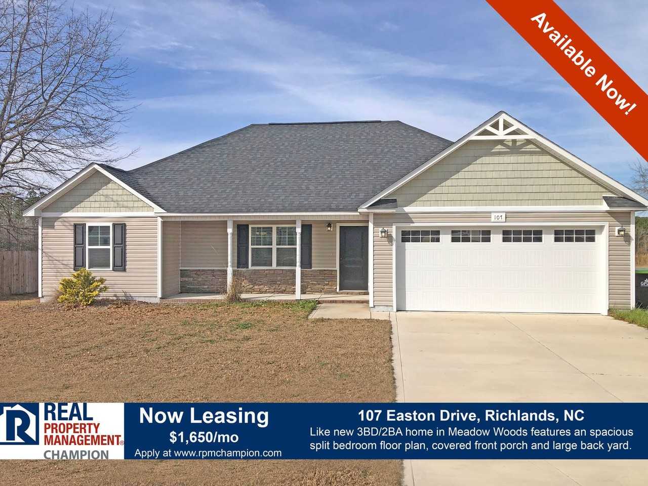 This 3 bedroom/2 bath features an open floor plan and split bedrooms. A charming covered front porch will greet you and your guests as you enter the home. The living room has a vaulted ceiling, a large double window overlooking the front yard and a cozy fireplace. The dining room has decorative chair railing and access to the back yard. The kitchen is functional yet stylish with lots of counter space, beautiful wood cabinets, double stainless-steel sink and a center island. The stainless-steel appliances include a dishwasher, range, built-in microwave and refrigerator. The spacious master bedroom features a trey ceiling, oversized walk-in closet, private bath with double sink vanity, tub/shower and second walk-in closet. The guest rooms and a full bath are located down a quiet hallway. Located on a large lot in the newer community of Meadow Woods in Richlands. Schedule a Showing: https showmojo com 5ebd6c3076 listings mapsearch We are an Equal Housing Opportunity Management Company and abide by the term of the Federal Fair Housing Act. Pets allowed with prior approval and required pet fees. Aggressive breed list may apply. Contact listing agent prior to submitting application. No Smoking, e-cigarettes or vaping. All applicants over 18 years of age are subject to a background check, including criminal, credit, employment verification, and past tenancy.