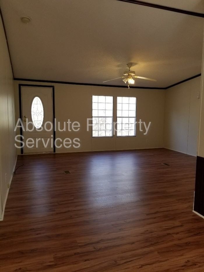 This newly rehabbed home comes with laminate flooring throughout, new paint and lots of space!! Looks brand new! Front living room leads to large dining room that is open to the kitchen and den for one very large living space! Perfect for entertaining or large family feasts! Den has a cozy wood burning fireplace too! Large master bedroom has a reading area/office/ exercise or whatever you want it to be room! Master bath comes with large garden tub and separate oversized shower and plenty of room. Huge walk in closet in the master too! Three other bedrooms at the opposite end come with plenty of room and all but one have walk in closets as well! Home comes with electric central heat and air as well as all kitchen appliances! Small fenced area at back of home too. This is a great location if you like being in a country setting but close enough to town to have convenient access to town. Call Absolute Property Services, LLC to schedule your showing! Contact us to schedule a showing.