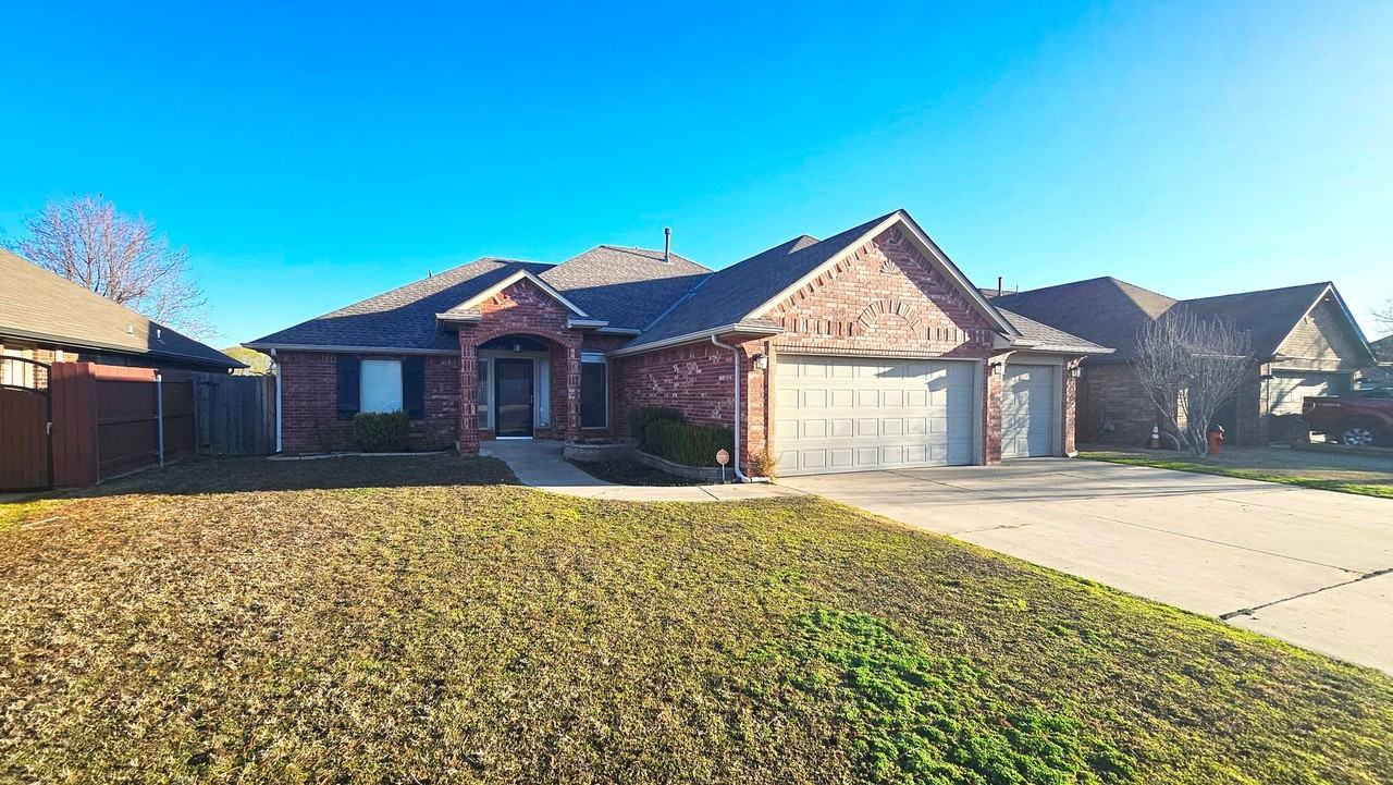 Discover this incredible home in Yukon! This property offers three bedrooms plus a study. The living area showcases wood flooring, a fireplace, soaring ceilings, and a seamless flow into the dining and kitchen spaces. The kitchen is equipped with solid surface countertops, stainless steel appliances, a pantry, and an abundance of cabinet space. The spacious primary suite includes a full bath with a soaking tub, a separate shower, dual sinks, and a walk-in closet. The study features built-in shelving, French doors, and a generous layout. Step outside to the screened-in back patio—perfect for enjoying fresh air without the pests! The backyard is fully fenced and includes an outdoor storage area. With a three-car garage and an extended driveway, there's ample room for parking. This home has so much to offer—contact us today to schedule your private tour!
