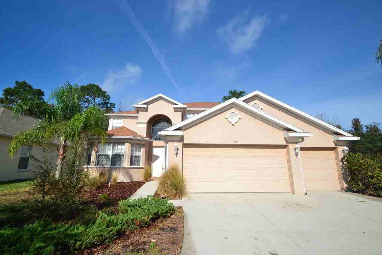 Newly remodeled home situated in the Land O Lakes area. This home features five bedrooms, three bathrooms, and offers over 3,200 square feet of living space. Light and clean interior with carpet and tile flooring throughout. Very spacious chef kitchen with wonderful upgrades including stainless steel appliances, granite counter tops, beautiful wood cabinetry with built in wine rack, extended counter space, and pantry. Laundry room with washer/dryer hookups, sink, and cabinets for extra storage space. Cozy living room that is very spacious and has sliding glass doors that lead out to the screened patio. Master closet is perfect for keeping things organized by offering built in shelves/shoe rack.This home also has high ceilings, an attached three car garage, large master bathroom, loft, and is backed up onto a beautiful conservation.