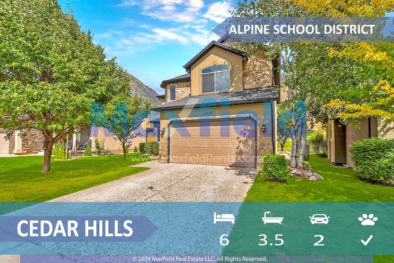 Welcome to this stunning, newly renovated home nestled in the highly desirable Cedar Hills community, right at the mouth of American Fork Canyon. This exceptional property offers 6 spacious bedrooms and 3.5 luxurious baths, providing ample space for family, friends, and guests. Enjoy breathtaking mountain views from your backyard that backs up to a serene pond, creating a private oasis perfect for relaxation and entertaining. The large master suite is a true retreat, featuring a spacious walk-in closet and a spa-like en-suite bathroom. Alpine School District - CEDAR RIDGE ELEMENTARY, MOUNTAIN RIDGE JUNIOR HIGH AND LONE PEAK HIGH SCHOOL BOUNDARIES. Pet Policy:PETS: small pets considered with additional deposit and monthly pet fee based on pet. Visit MaxfieldRents. com pet-screening for more info. Smoking Policy:No Smoking or Vaping on the PropertyShowing by appointment only, to schedule a showing visit MaxfielldRents. com or call our Showing Hotline at 801.572.1300, option 1. Tenant Monthly Recurring Charges: Advertised Rent; and All Utilities (utilities vary by property and tenant usage) Resident Benefits Package of $30Residents are required to maintain a $100K Tenant Liability Insurance (PDLW) for accidental damage arising from fire smoke explosion, water discharge or sewer backup caused by negligent acts or omissions. Personal renter's insurance is recommended but not required. Tenants will be charged $14.50 per month if they do not have the PDLW with their renters insurance. Prior to move-in, tenants are required to pay a Refund Eligible Cash Security Deposit as advertised (typically one months rent) or have the option for using our Deposit Alternative. We offer Obligo, which lets you skip paying a security deposit in exchange for a small non-refundable monthly fee. There is also a one-time Lease Initiation Administration Fee of $150. All applicants over the age of 18 must fill out a separate application and there is a limit of 3 unrelated individuals and 2-3 vehicles depending on the unit. Beware of rental fraud and scams and from persons claiming they are getting rid of a property management company or use a google voice number. Please visit MaxfieldRents. com rental-fraud for more information. For a list of qualification guidelines please visit MaxfieldRents. com qualification-guidelinesDownload our app at MaxfieldRents. com AppAll information is deemed reliable but is not guaranteed and subject to change. Photos may be of similar units if a multi-family property. Property offered through Maxfield Property Management. We are committed to equal housing opportunities and provide housing opportunities regardless of race, color, religion, sex, national origin, physical or mental disability, or familial status. We Do Business According to the Fair Housing Law.