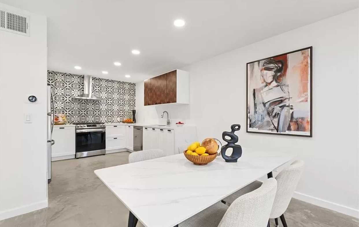 Welcome to this contemporary and stylish 1-bedroom, 1-bathroom condominium nestled in the heart of the Redwoods community. Upon entering, you are greeted by modern and sleek finishes that set the tone for the entire space. The thoughtfully designed open floor plan seamlessly connects the kitchen, dining area, and living room, creating a cohesive and inviting living environment. Inside, the interior boasts fresh paint, smooth scraped ceilings, polished concrete flooring, new kitchen cabinets, quartz countertops, and brand-new stainless steel appliances. A standout feature is the striking backsplash that adds a touch of adventure to the kitchen. Pass through the large sliding door to the private patio, offering a tranquil space to savor morning coffee or unwind in the evening. The upper floor hosts a spacious bedroom and bathroom, both upgraded with rich dark engineered wood floors and polished concrete flooring. The inviting spa-like shower showcases stunning porcelain and marble tile, complemented by quartz countertops at the vanity and a modern vessel sink. Abundant natural light streams through tall and ample windows, enhancing the overall ambiance. In addition to the aesthetic upgrades, practical improvements include updated plumbing and a new HVAC unit. The Redwoods community itself is a picturesque complex, offering a range of amenities such as two community pools, a spacious park-like greenbelt at its center, a clubhouse, and a state-of-the-art gym. Conveniently located near the 5, 55, and 22 freeways, this home provides easy access without sacrificing a peaceful atmosphere.