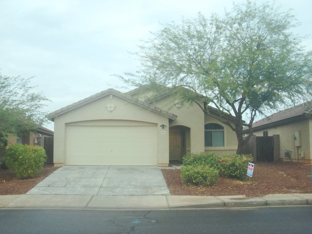 This delightful cozy 3 bedroom has great curb appeal and low maintenance front yard. Nice tile, some new carpet and all appliances with exception of microwave are included! This great room floorplan offers plenty of space and the master is split from the other 2 bedrooms. Nice size kitchen offers a Gas Stove, pantry, eat in area, and breakfast bar. The spacious master suite has a large walk in closet, dual sinks with a stand up shower, and a private toilet room. Indoor laundry room with washer & dryer, attached two car garage with opener for your convenience. Block fenced back yard with covered patio. backs up to a green belt with a nice view! Sorry no pets service animals only. Conveniently located in the Sanctuary Community off 107th Ave & Lower Buckeye close to freeways, schools and shopping. Call to schedule a tour 623-748-7800 x 107