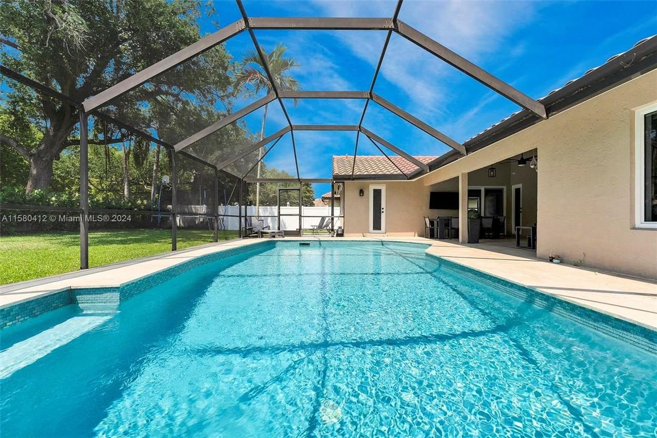 Paradise awaits in this 4 bed 2.5 bath pool home in prestigious Jacaranda Lakes. This gorgeous home elevates the epitome of Florida living with its indoor-outdoor flow. The luxurious kitchen is equipped with Quartz countertops, oak wood cabinets, top of the line appliances and a pantry customized to perfection. Vaulted ceilings and oversized impact windows bring natural light throughout. The newly remodeled bathrooms have a spa-like essence, and the extended travertine patio is perfect for entertaining year round. Zoned for A-rated Central Park Elementary School, walking distance to shops, restaurants, and multiple parks. Please contact Andy Coleman with Exp Realty : (203) 751-3715 Courtesy of Lokation