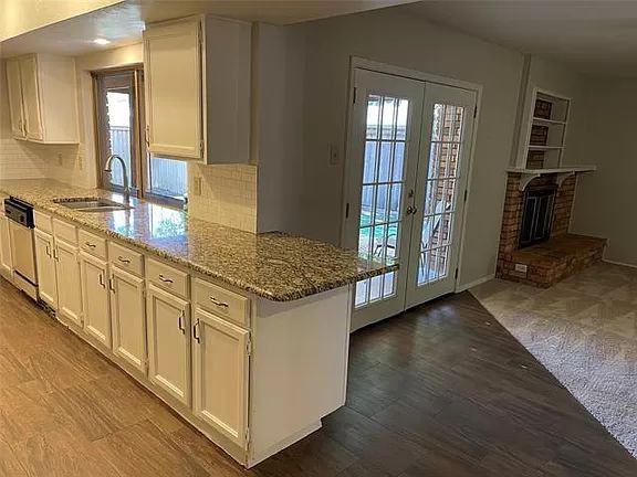 Spacious home in great location inside treed neighborhood. Richardson schools with sought-after Wallace Elementary! Four bedrooms with ceiling fans, master has large walk-in closet and home has ample storage. Updated flooring throughout as well as fresh paint and carpet plus updated bathrooms. Kitchen has granite and stainless steel and is open to the second living area with its cozy fireplace. Walk out the French doors to a covered patio. As a bonus there is an additional bar serving area which also has granite countertops and extra storage. Great for entertaining family and friends. Fenced yard and 2-car garage provide privacy. Fresh, clean and updated. Ready for move in!