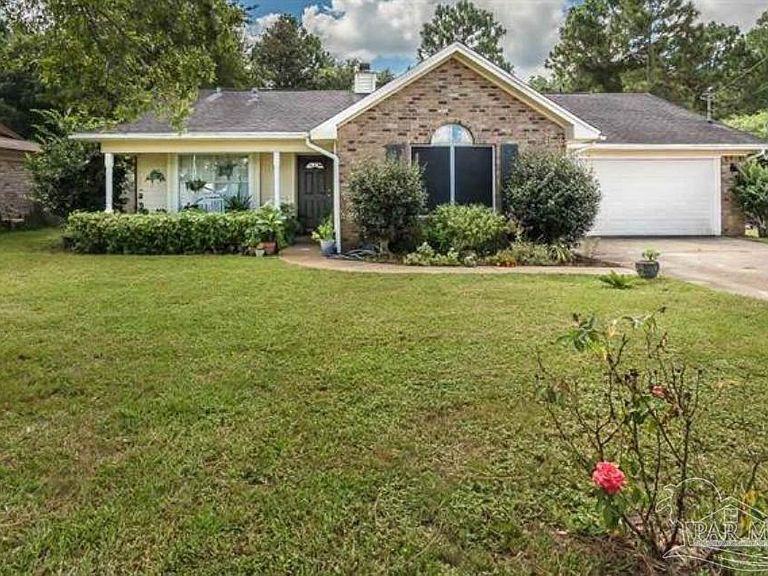 Gorgeous, well-maintained home with lot of privacy near NAS Pensacola! This home has incredibly beautiful curb-appeal with a long porch, and large front yard. The yard is almost a third of an acre. Fully fenced-in backyard! The floors are tile throughout the main areas and bathrooms with carpet in the bedrooms. The master suite is near the front of the house and split bedrooms are on the right. The open entertainment area combines the living and dining, so there is flexibility in furniture placement. The kitchen and baths have granite countertops and a beautiful backsplash dresses up the kitchen, and gives it that "wow-factor"! You will not be disappointed in upgrades, well appointed-floor plan, curb appeal, and privacy! All new Carpet and Interior Paint! A must see!