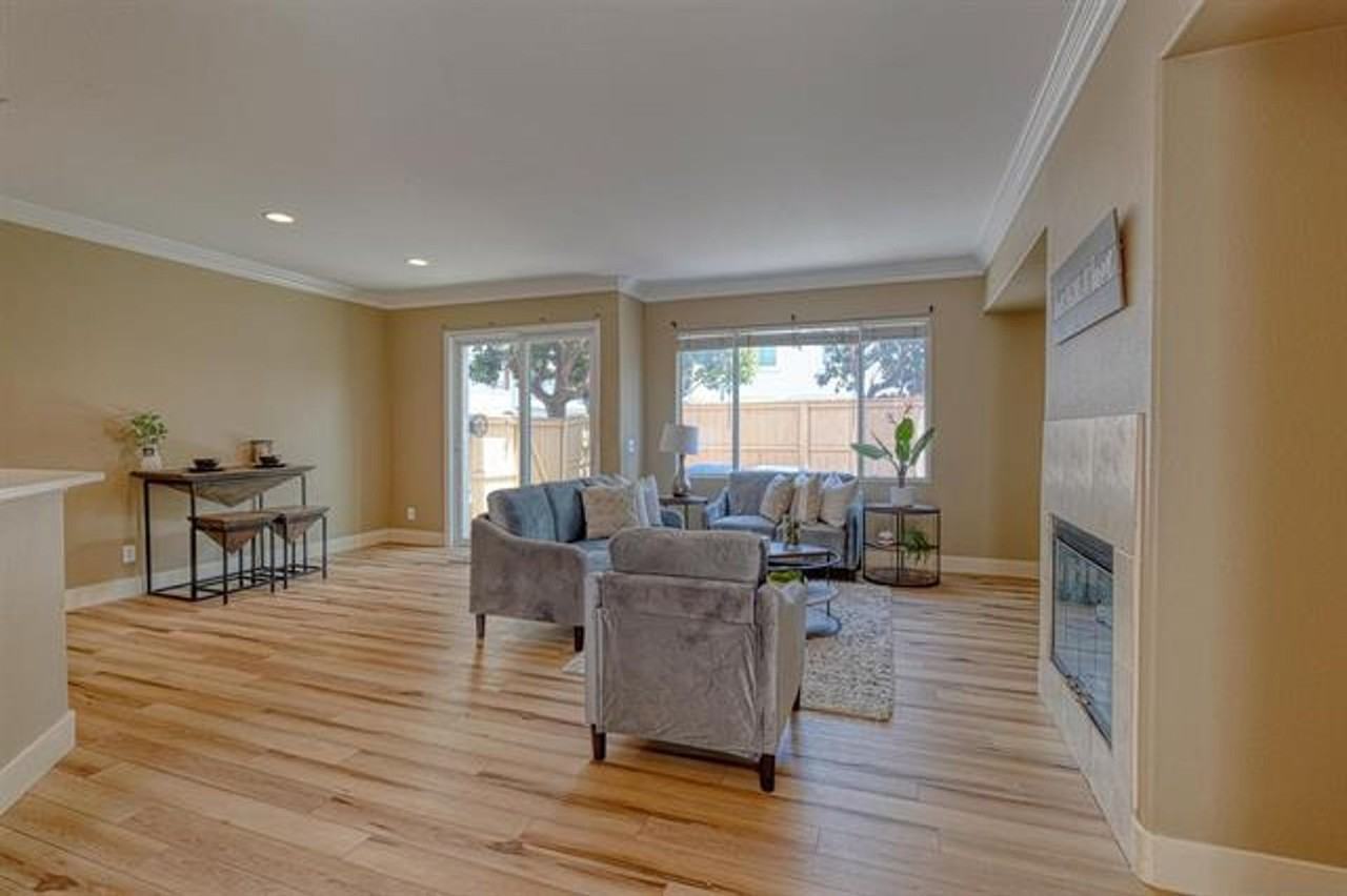 This 3 bedroom 2.5 bath townhome features remodeled kitchen, carpet and vinyl plank flooring, crown molding and remodeled bathrooms. First floor features kitchen with granite counter tops, white cabinets, stainless steel appliances, full subway tile backsplash and tile flooring. Fridge included. Living room features vinyl plank flooring, fireplace and sliding door out to fully fenced rear yard. Dining room off of kitchen with tile flooring. Half bath with tile flooring and pedestal sink. Direct access to 2 car garage from dining area. Upstairs features master bedroom with walk in closet and attached master bath, 2 additional bedrooms and hall bath. New carpeting upstairs with exception of bathrooms which are tiled. All bedrooms have ceiling fans. Master bath features dual vanity sinks, granite countertop, white cabinets and glass enclosed stall shower. Hall bath features tile flooring, granite counters, white cabinets and tub/ shower combo. Laundry in garage with new high end LG washer and dryer. Newer A/C unit. Complex features pool and Jacuzzi. Close to highly respected Scripps schools, shopping and eateries. Tenant responsible for all utilities. Available to rent on 7/10. www ampropman com Meridian Property Management Inc. CA Corp DRE Lic#01856665