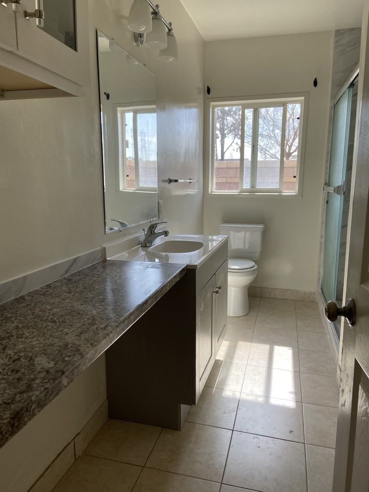 1 bed / 1 bath apartment unit with newer laminate flooring, newer shower and bathroom sink vanity. LARGE side yard for use. Informal kitchenette (see photos), small with newer granite tops (fridge space in living area next to it). No stove range, but electric hot plates and oversize oven are provided for effective cooking. Parking on street of single family house neighborhood. Cats or 1 small dog okay.