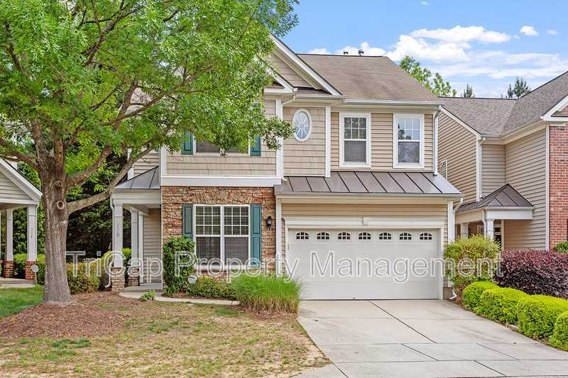 Move In Ready! This End Unit Townhome has 2,640 SQ FT, a huge finished 3rd floor bonus room & a 2 Car Garage! Great Cary Location! Maintenance Free Living - Open & bright floor plan, Beautiful kitchen, cherry cabinets, granite counters, tile backsplash Stainless Steel appliances, 1st floor study and 1/2 bath, 2nd floor has master suite w/luxury bath & 2 Walk in closets, 2 more bedrooms, Huge Finished 3rd floor bonus room, Private backyard patio, extra storage room, Rent includes Washer and Dryer, lawn maintenance & use of Bishops Gate pool. Request a tour.