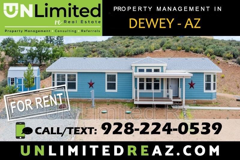 Unwind in your spacious sanctuary at 110 South Beetlebug Pass, nestled in the town of charming Dewey, AZ. This delightful manufactured home rental boasts three inviting bedrooms and two full baths, offering ample space for relaxation and rejuvenation. With a generous 1,979 sq ft of living area, comfort and convenience blend seamlessly to create the perfect retreat from the hustle and bustle. Imagine waking up each morning to the serene surroundings and the promise of a day filled with possibilities. The open floor plan encourages a natural flow, making it easy to entertain guests or enjoy quiet moments of solitude. Each room is designed to maximize both space and light, creating a warm, welcoming atmosphere throughout. Whether you're hosting a dinner party or enjoying a cozy movie night, this home is equipped to meet your every need. The vibrant community of Dewey offers a unique blend of small-town charm and modern amenities, ensuring you have everything you need close at hand. Make 110 South Beetlebug Pass your new haven and experience the best of mobile home living in beautiful Arizona. Professionally Managed by UnLimited RE Property Management. No smoking. $60 Application fee per applicant. One time 7% of one month's rent lease administration fee and $43.95 per month Resident Benefit's package are required for all leases. Application for co-signers is required if accepted. Solar Power is not included in the lease price unless otherwise stated. Pets considered case by case basis, If the property does accept pets: Required pet screening (https unlimitedreaz petscreening com ), pet rent & deposit will be required and will be added. **We do not accept any applications submitted on Zillow or on properties that have not been shown. Please contact our office or website directly UnlimitedReAz. com for our application and to schedule a showing. 2 pets max