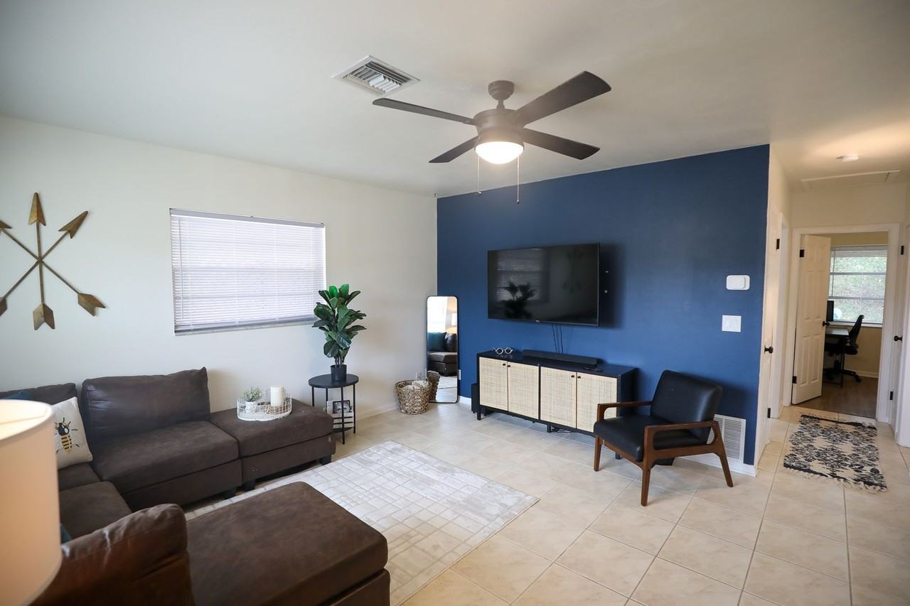 Welcome to your vibrant oasis in sunny St. Petersburg, FL! This fully furnished 2-bedroom, 1-bathroom pet-friendly home is a haven for both you and your furry friend. Step inside to discover a modern yet cozy living space adorned with trendy décor that screams curated style. The open-concept living room features plush seating perfect for movie nights or catching up with friends over a cup of coffee from one of the nearby coffee shops. The pet-friendly flooring ensures that your four-legged companion can roam freely without worry. The kitchen is a chef's dream, equipped with tons of cabinetry, sleek countertops, and all the essential cookware for whipping up Instagram-worthy meals. Whether you're hosting a dinner party or simply meal prepping for the week ahead, this kitchen has everything you need to unleash your culinary creativity. Both bedrooms boast comfortable mattresses (one queen in and one full bed) and ample storage space for all your belongings. There is a desk and chair for mobile work in the 2nd bedroom. With natural light streaming in through the windows, each room provides a serene sanctuary for rest and relaxation after a day of exploring all that St. Pete has to offer. But the real highlight of this home lies outdoors. Step through the sliding doors onto the spacious screened-in lanai, where you'll find a dining table perfect for al fresco meals, a cozy couch for afternoon naps, and a grill ready for impromptu BBQs with friends. Let your furry friend frolic in the fenced backyard while you soak up the Florida sunshine or unwind with a good book. Conveniently located near downtown St. Petersburg, this pet-friendly abode offers easy access to an array of trendy restaurants, eclectic boutiques, and vibrant art galleries. Spend your days exploring the local parks and waterfront, or simply relax on the nearby sandy beaches soaking in the salty sea breeze. With its perfect blend of style, comfort, and pet-friendly amenities, this St. Petersburg home is sure to steal your heart as you seek the ultimate Sunshine State getaway. Don't miss your chance to make this slice of paradise your own!