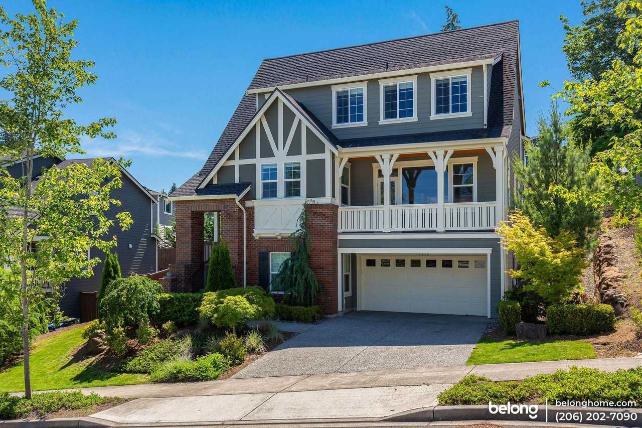 Impressive four-bed and four-bath modern farmhouse-style abode featuring spectacular architecture and design details! Hardwood floors welcome you as you step into the majestic living area. An adorable fireplace highlights the space, as well as large glass windows that welcome natural light. A clear glass door opens into your lovely front covered porch where you can look out and appreciate the peaceful surrounds! Well-equipped gourmet kitchen overlooks a bright formal dining area and is enhanced by a sizeable center island with beautiful pendant lights and lots of counter and cabinet space. With a spacious walk-in pantry, six-burner gas range with a vented hood, a new oven, microwave, dishwasher, and French-door fridge—preparing meals and entertaining guests will surely be a delight! Wall-to-wall carpeting on all rooms, lofted areas, and hallways are new! Lower level has a private bedroom, a spacious bonus room, and a full bath. The upper level holds the king-sized Primary bedroom suite featuring a hexagonal recessed wall, a walk-in closet with racks, and deluxe master bath with double vanity, a large soaking tub by the window, a glass-enclosed shower with seat, and linen storage. Secondary bedrooms boast of ample wardrobes and easy access to full baths. Located in Parkhurst, an award-winning luxury community created by the Toll Brothers, minutes away from charming shops and restaurants in downtown Bothell! *Our future Resident will be responsible for refundable move-in/move-out fees that might be required by the HOA. Message us for more details! *This home is available for rent only until April 30 2025. No lease extensions and renewals will be entertained. Message for clarification.